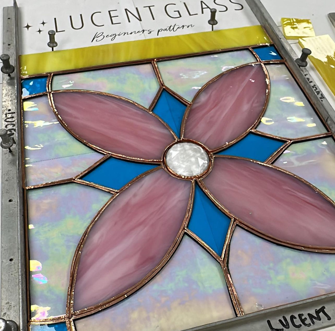 An in-depth introduction to the copper foil method of stained glass art. In this course you will learn about design, tools, supplies and how to frame a stained glass window. You have the opportunity to choose a design from our curated set of pre-drawn patterns available. The final piece is approximately 10"x10" in size.